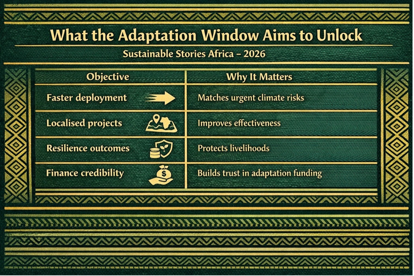By simplifying access and targeting high-impact interventions, the facility could improve execution rates, which is a recurring weakness in adaptation finance.