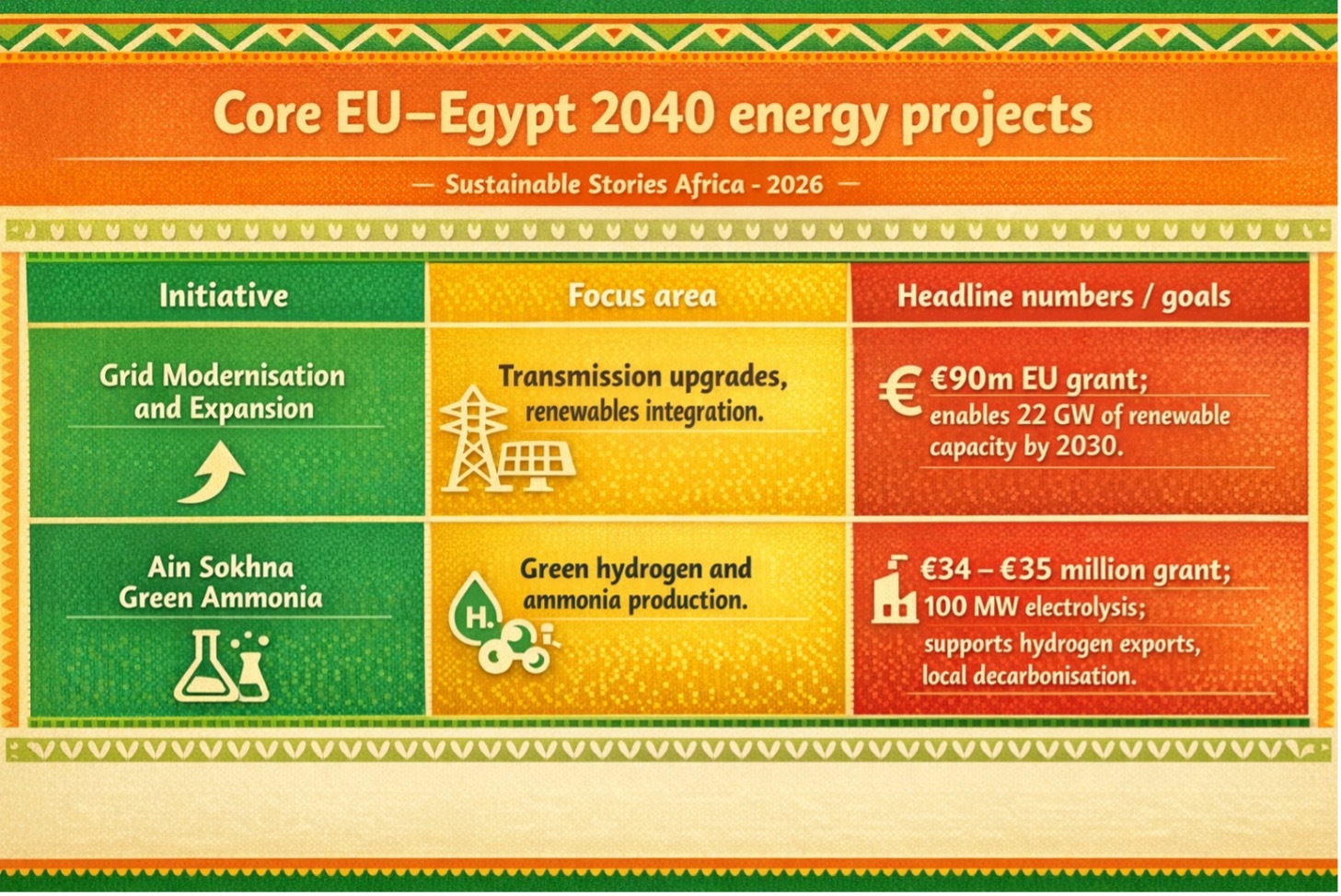 The package enables a major grid upgrade programme and a flagship green ammonia project in Ain Sokhna, designed to integrate 22 GW of renewables and scale clean‑fuel exports.