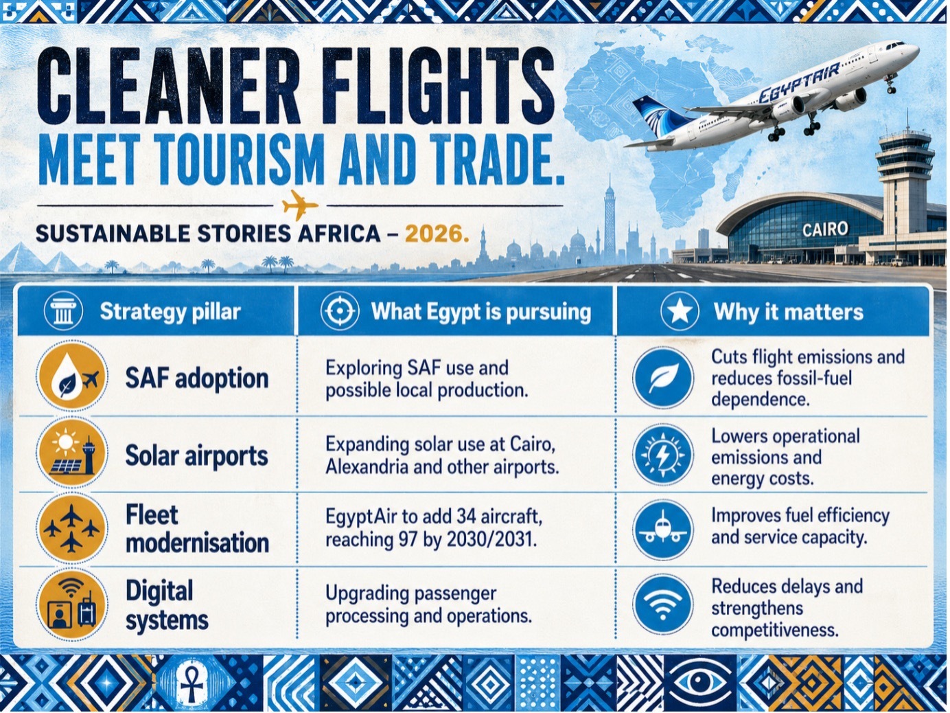 Aviation is one of Egypt's most strategic economic arteries, connecting North Africa to Europe, the Gulf, and sub-Saharan Africa while supporting tourism, trade and diaspora mobility. Its decarbonisation, therefore, carries continental significance.