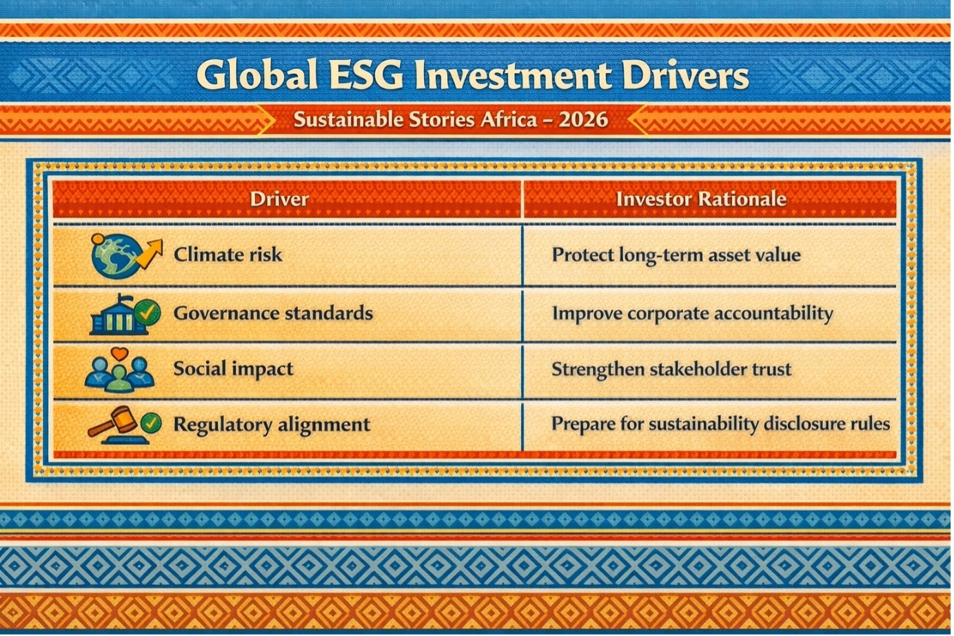 Institutional investors now use ESG metrics to evaluate long-term corporate resilience, regulatory risk exposure, and strategic sustainability performance.