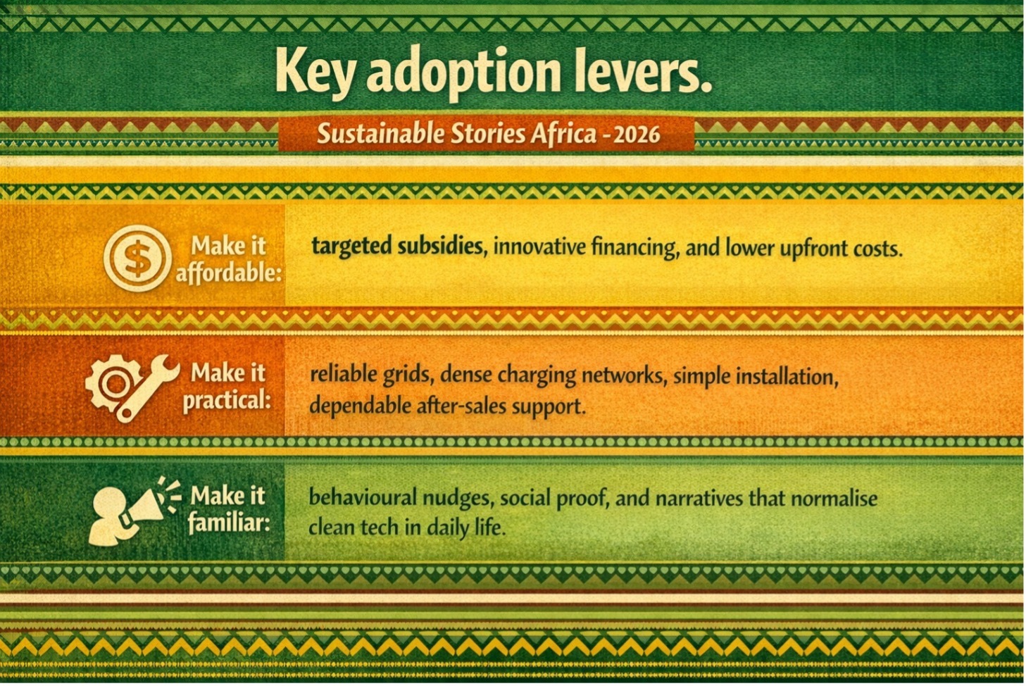 Bundled service models, such as pay‑as‑you‑go solar, second‑hand EV markets and community‑level infrastructure, can reduce perceived risk and make clean technologies feel like practical upgrades rather than experimental luxuries.