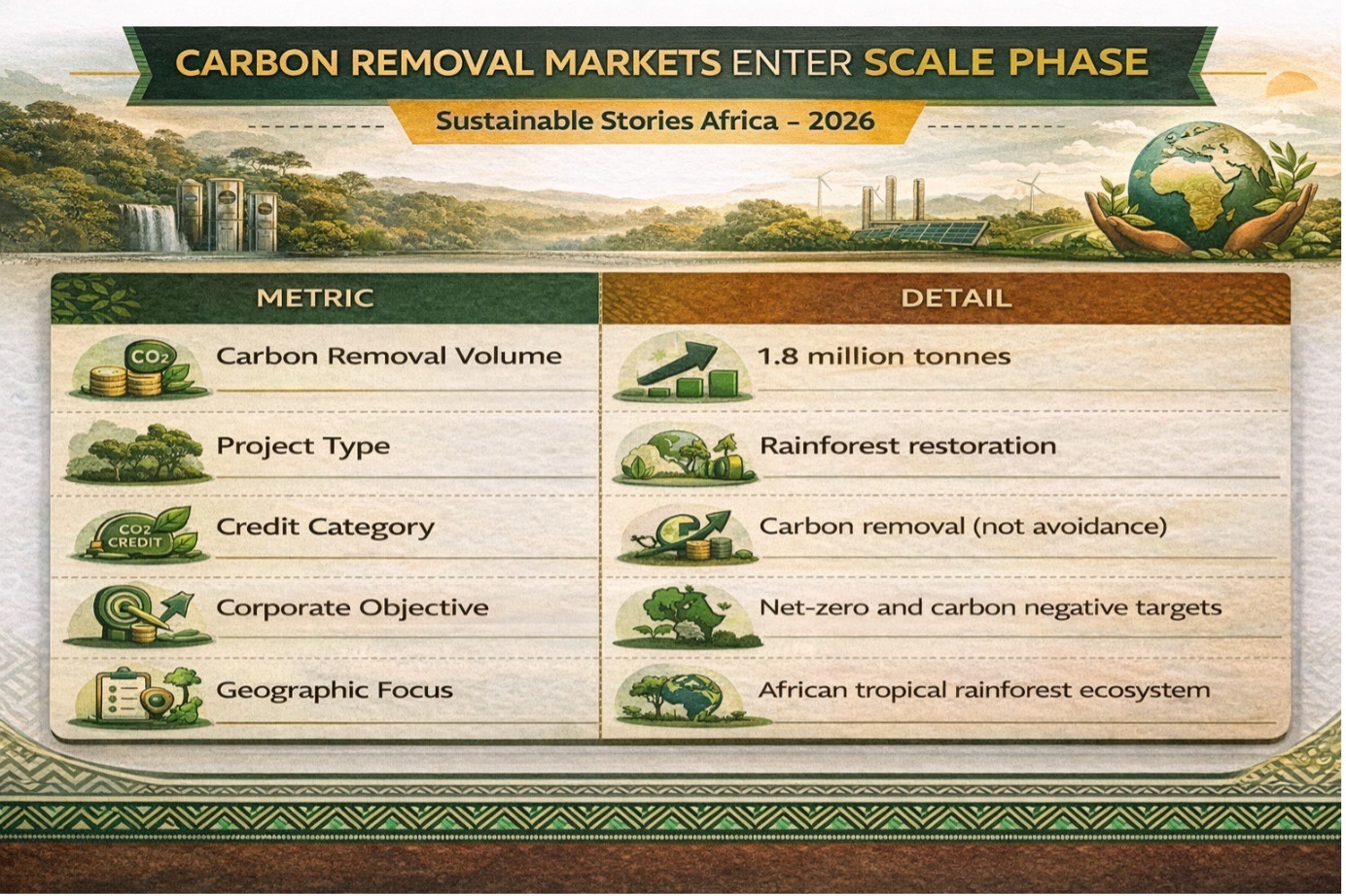 The multi-year partnership aims to combine biodiversity recovery with high-integrity carbon credits, positioning Africa as a serious player in global removal markets.