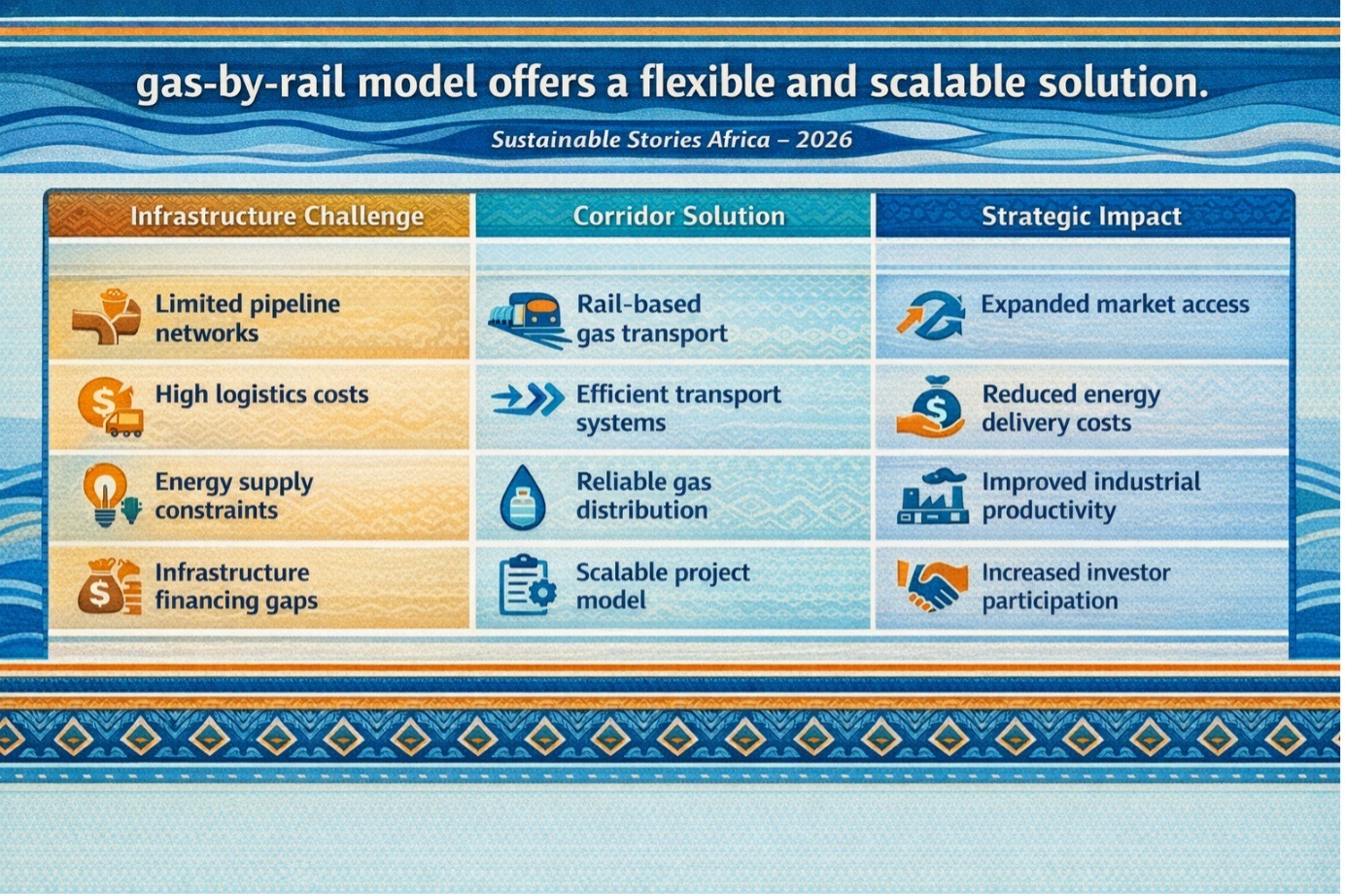If successfully implemented, the gas-by-rail corridor could serve as a model for scalable energy infrastructure across Africa, enabling efficient resource utilisation and strengthening regional integration.