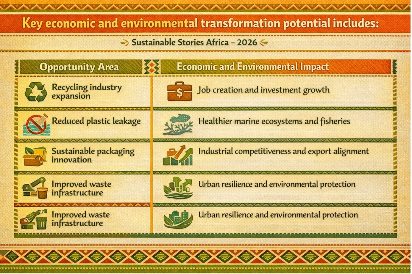 Recycling industries, material recovery systems and sustainable packaging innovations can stimulate investment and strengthen economic diversification.
