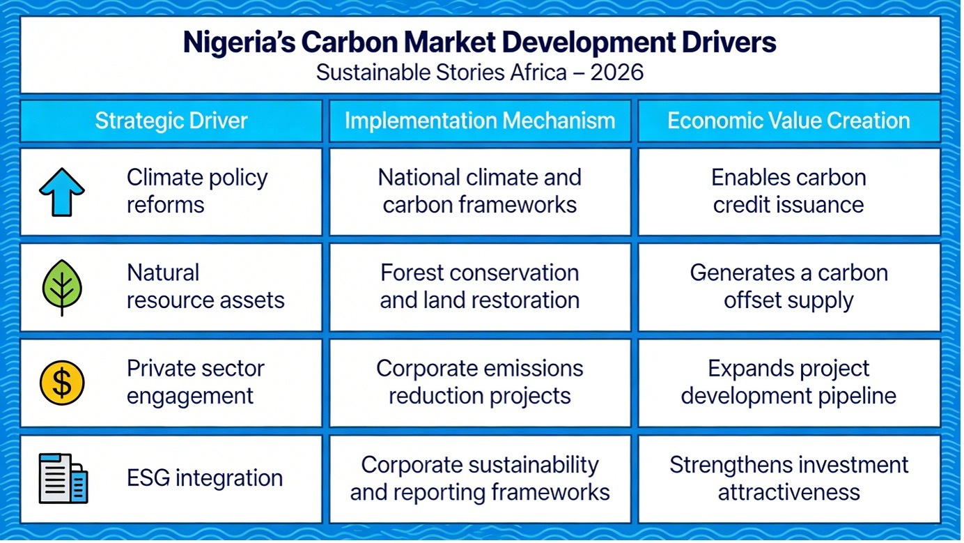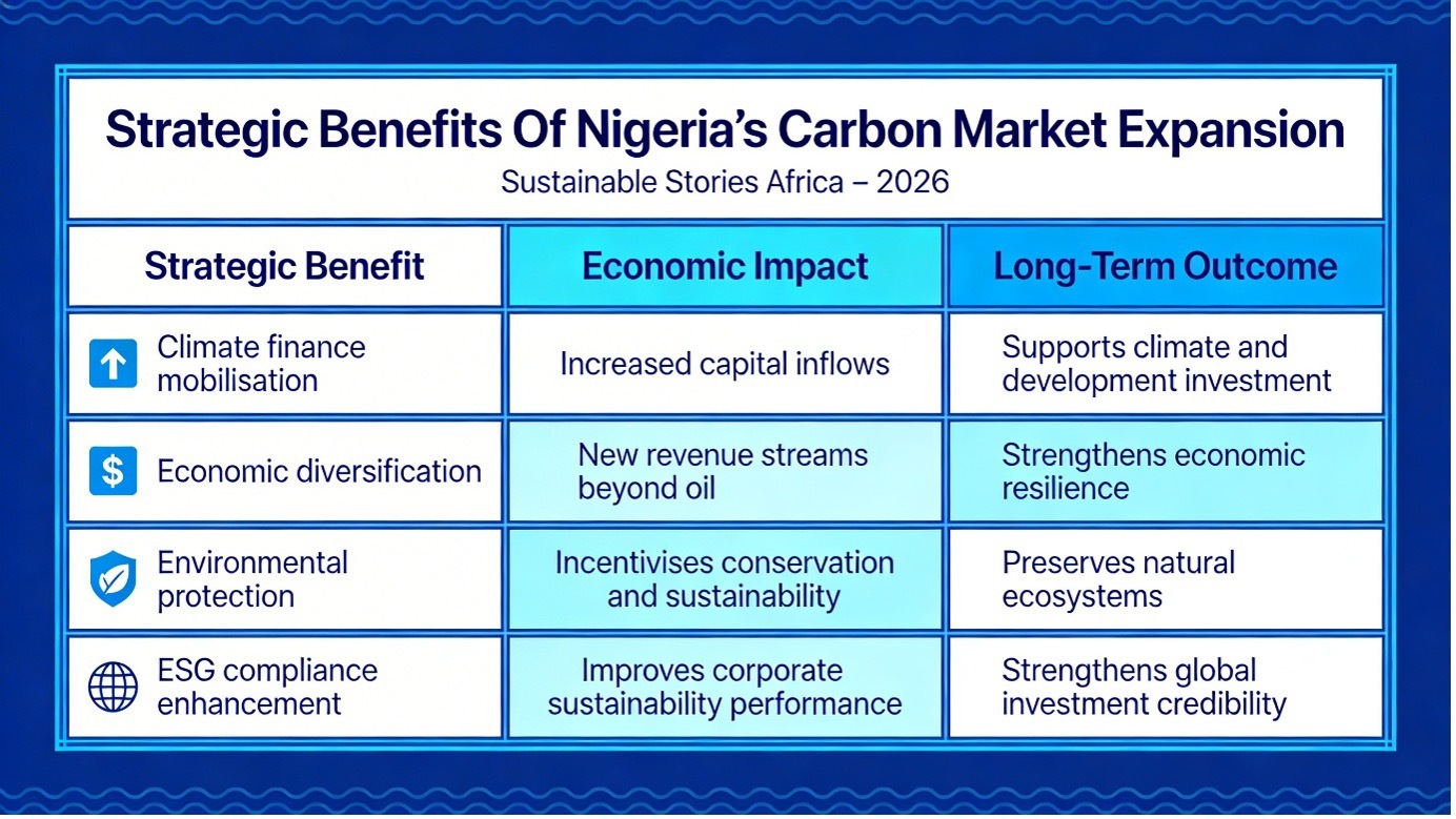 Carbon markets offer Nigeria the potential to attract climate finance, strengthen ESG compliance, and diversify revenue sources beyond fossil fuels.