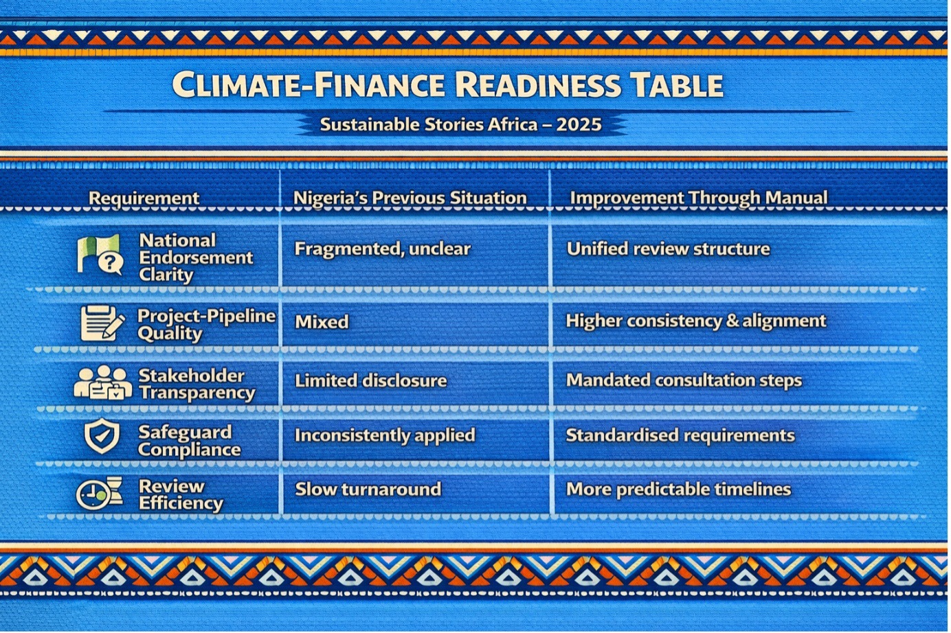 Nigeria previously struggled with inconsistent documentation and slow review cycles, which weakened its competitiveness in the GCF pipeline. The new manual aims to correct that.