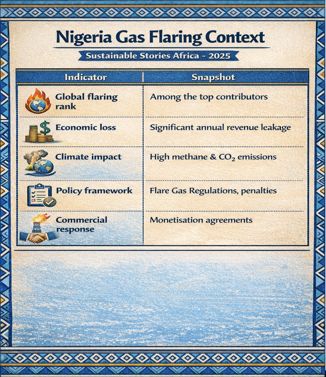 Despite decades of policy interventions, Nigeria remains among the world's top gas-flaring countries. Large volumes of associated gas are still burned off during oil production, contributing to greenhouse-gas emissions, local air pollution, and lost economic value.