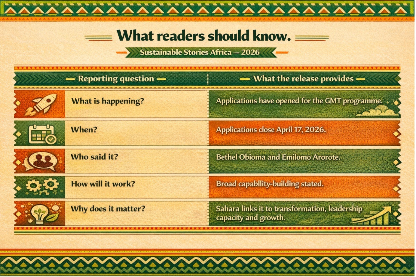 The Sahara GMT programme has historically produced leaders who now play critical roles across its operations, and forms part of its succession planning, organisational continuity and market positioning.