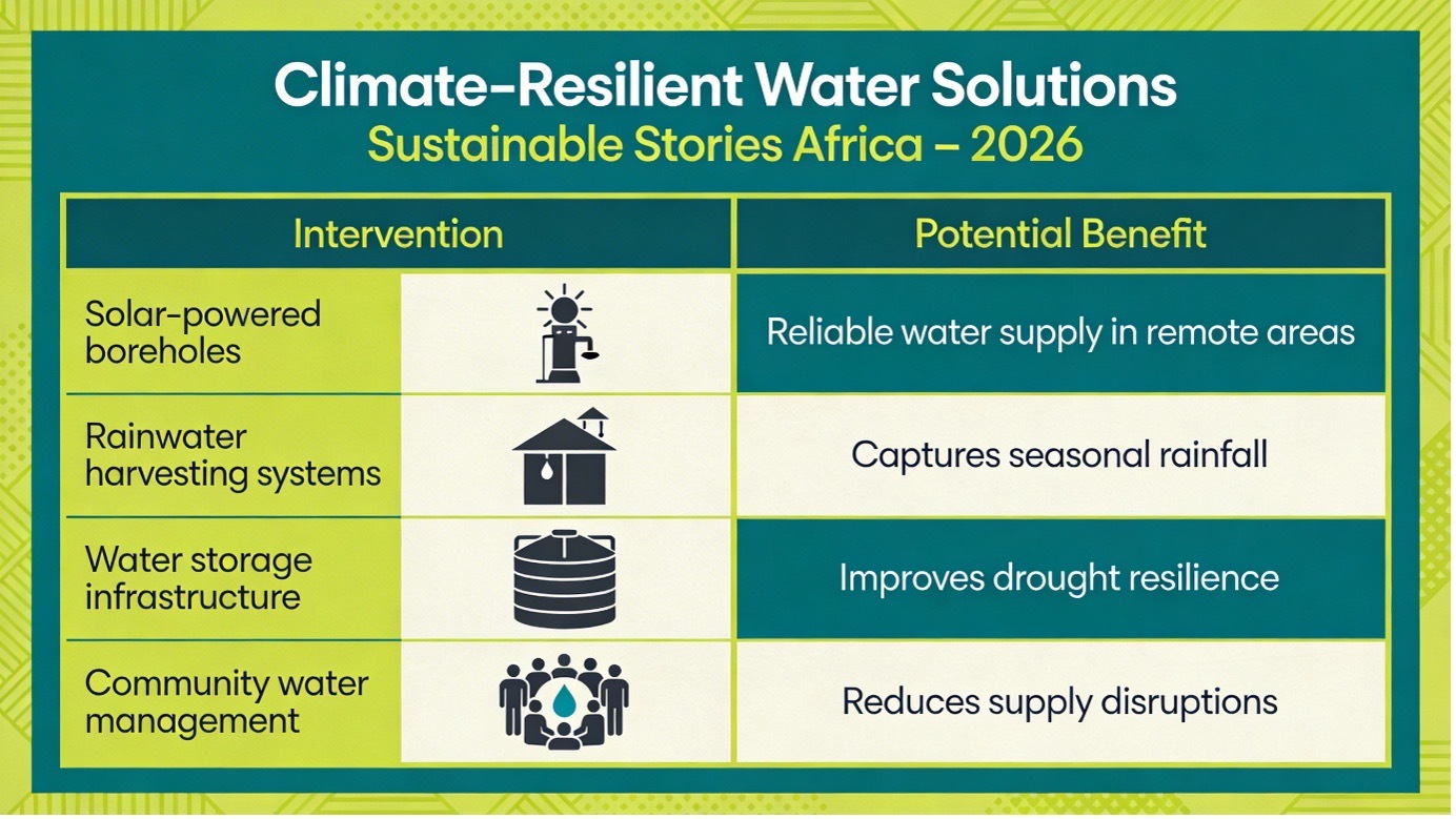 Climate-resilient water systems, such as deep boreholes, solar-powered pumping systems, rainwater harvesting and improved storage infrastructure, could provide more stable access to water in drought-prone regions.