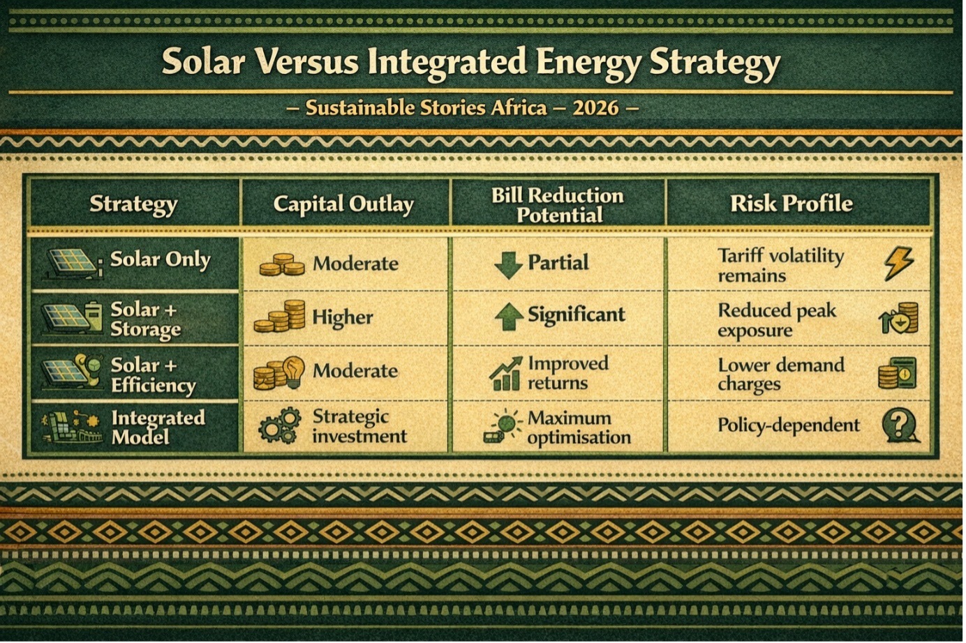 The reality: without storage, efficiency upgrades and smarter tariff structures, solar alone rarely delivers full financial relief.