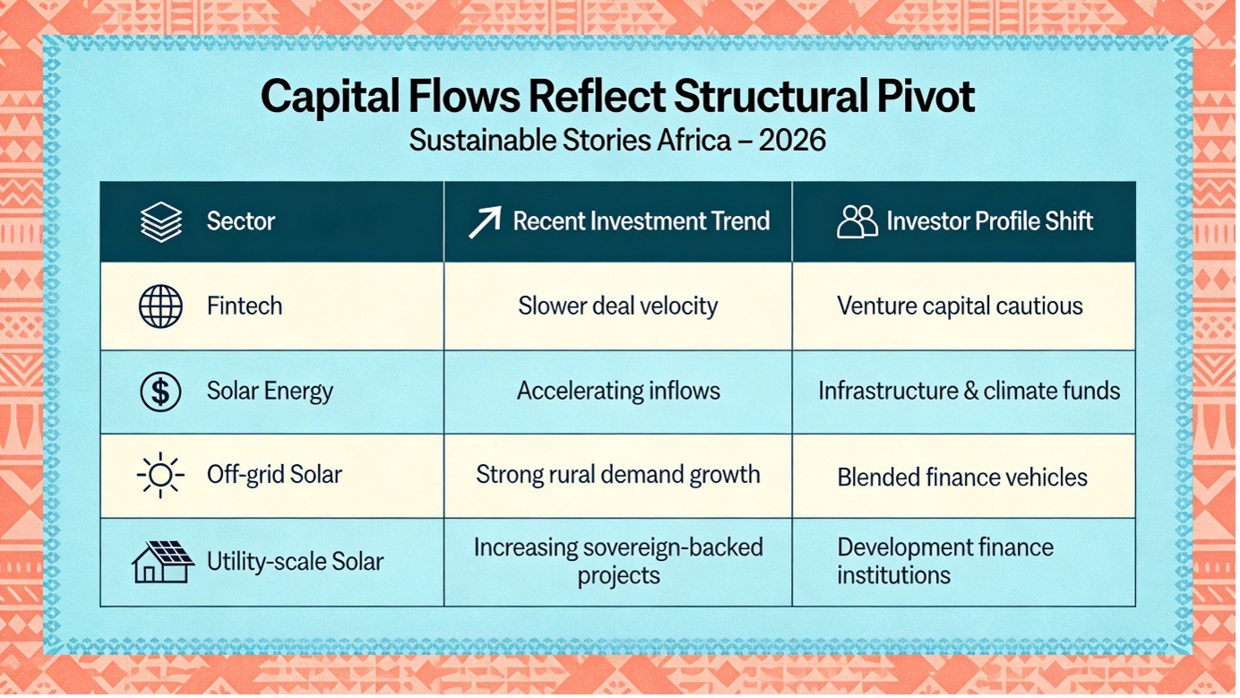 Solar power has overtaken fintech as Africa’s leading magnet for venture and infrastructure capital, signalling a decisive pivot in investor priorities.