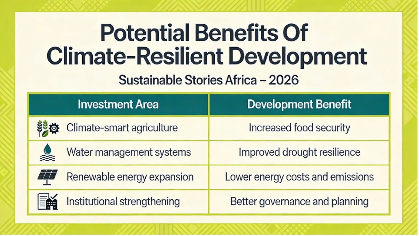 Investments in climate-smart agriculture, water infrastructure and renewable energy could help stabilise rural livelihoods while reducing vulnerability to environmental shocks.