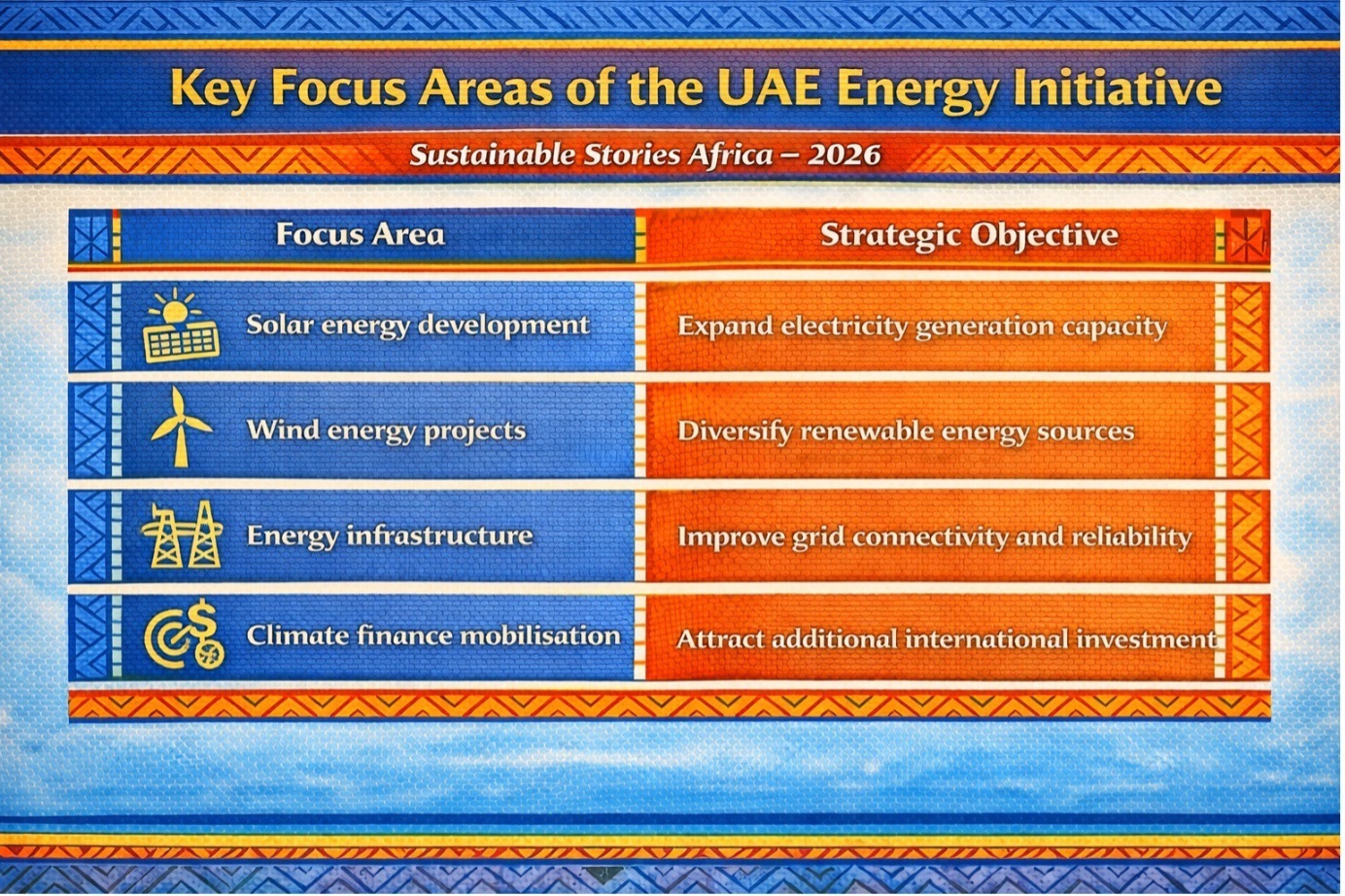 International financing initiatives such as the UAE programme aim to bridge this gap by supporting large-scale renewable energy deployment.