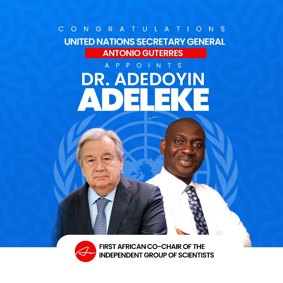 The announcement, made on 19 September 2025, marks a historic milestone as Dr. Adeleke becomes the first African and first Nigerian to co-lead the flagship scientific effort, underscoring growing recognition of African expertise in global sustainability policy.