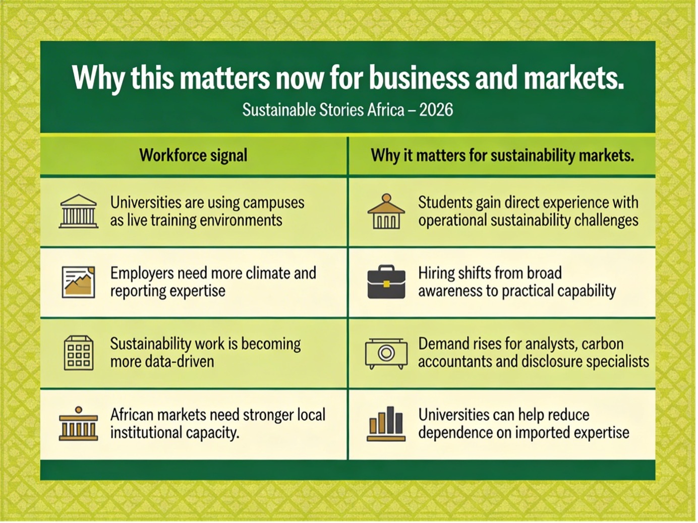 For African markets, the lesson is especially relevant. As climate disclosure, clean energy investment and supply-chain scrutiny grow, higher education may become one of the most important places where the next generation of sustainability professionals is being formed, not later, but already.