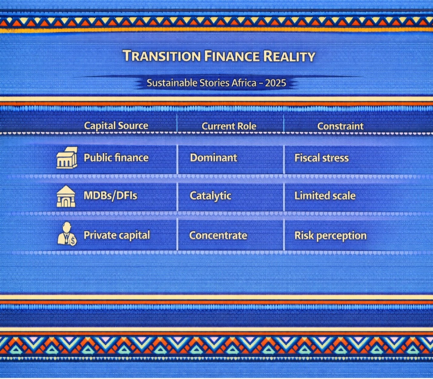 | MDBs/DFIs | Catalytic | Limited scale |