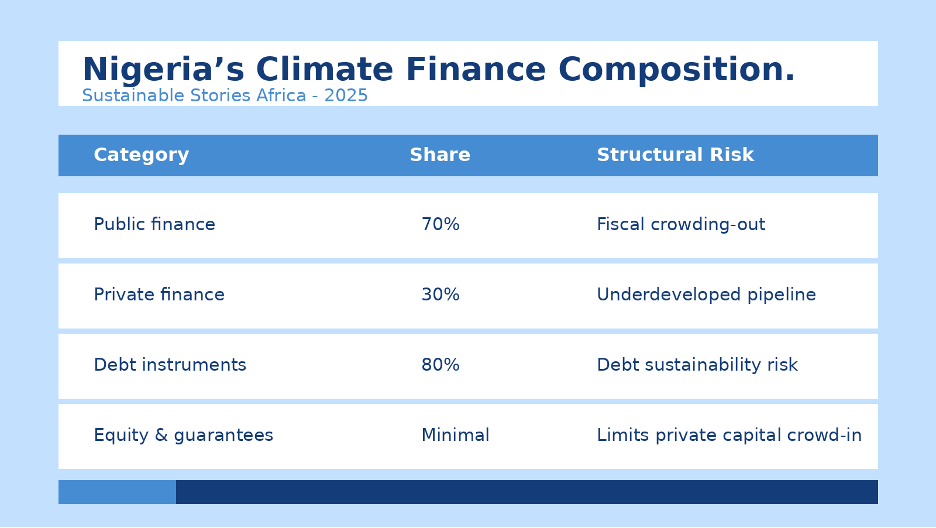 Nigeria's climate finance challenge is therefore not only about scale, but about fiscal realism and where capital can actually land.