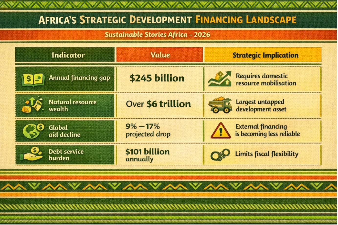 The urgency is clear. Sub-Saharan Africa faces an annual development financing gap of approximately $245 billion, while official development assistance continues to decline amid tightening fiscal conditions in donor countries.
