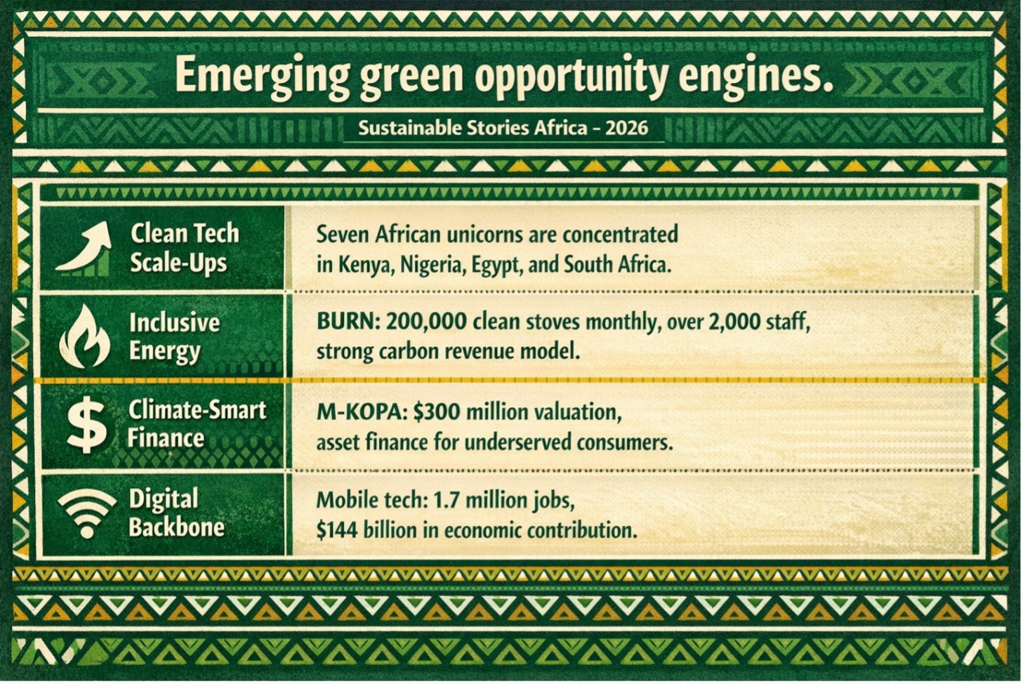 | Clean tech scale-ups | Seven African unicorns are concentrated in Kenya, Nigeria, Egypt, and South Africa. |