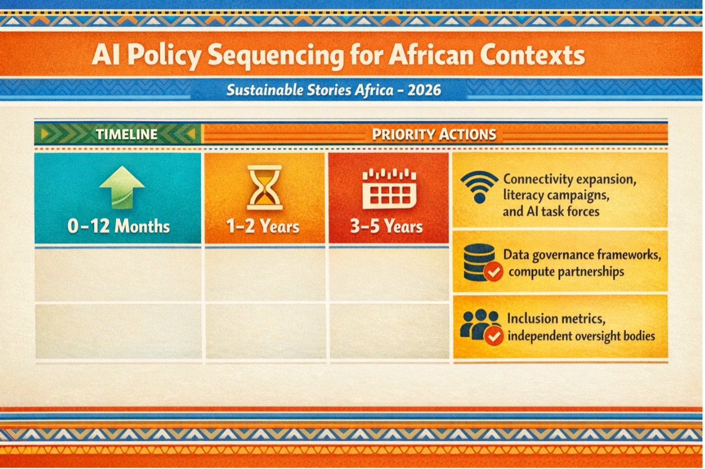 Drawing from UNDP’s policy sequencing (Immediate 0–12 months; Medium 1–2 years; Long-term 3–5 years), Africa’s agenda should prioritise: