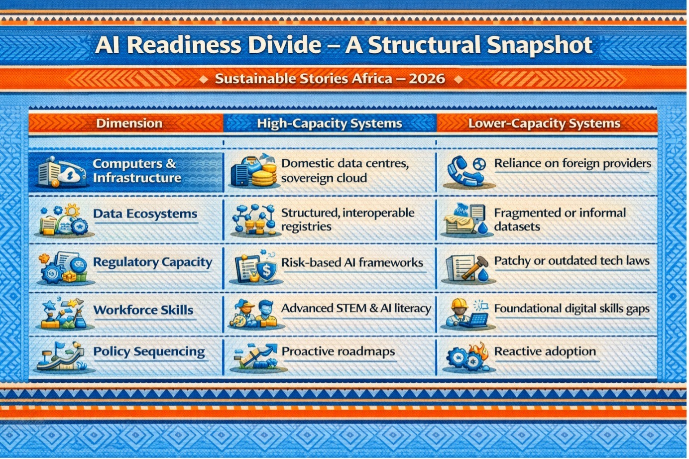 Africa sits across this spectrum, Rwanda experimenting with digital public infrastructure, Nigeria scaling fintech ecosystems, Kenya deploying AI in agriculture; however, continent-wide coherence remains fragile.
