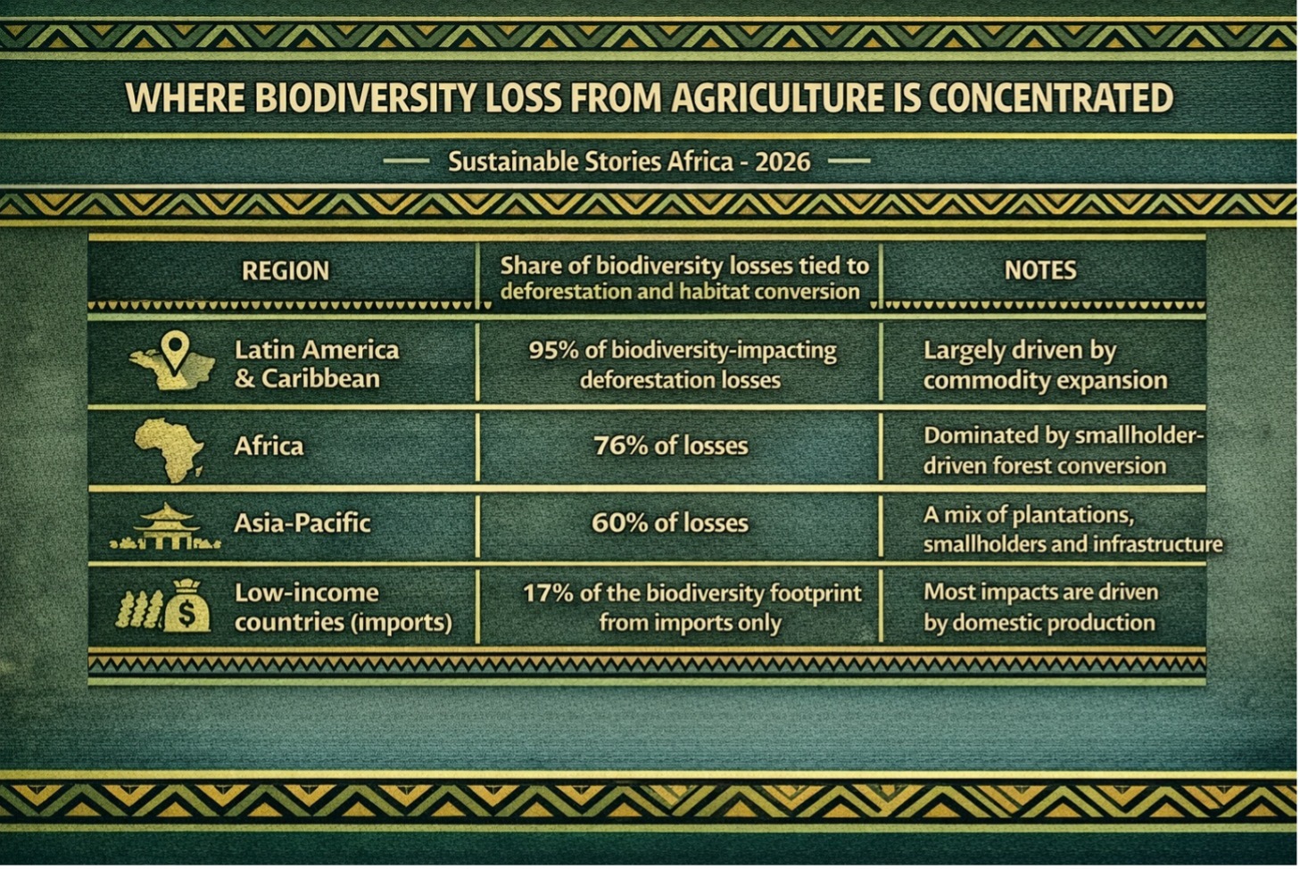 | Latin America & Caribbean | 95% of biodiversity-impacting deforestation losses | Largely driven by commodity expansion |