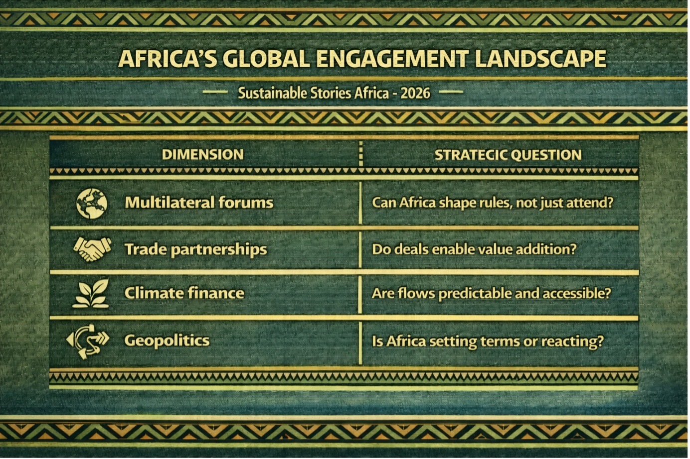 | Multilateral forums | Can Africa shape rules, not just attend? |
