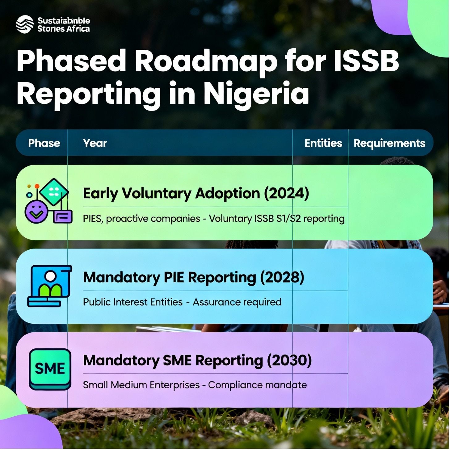 Nigeria's staggered timetable toward mandatory sustainability reporting places market opportunities at the forefront of ESG transformation in Africa. The FRC's roadmap, we believe, signals both ambition and caution, enabling early voluntary adoption and tiered mandates for PIEs and SMEs.