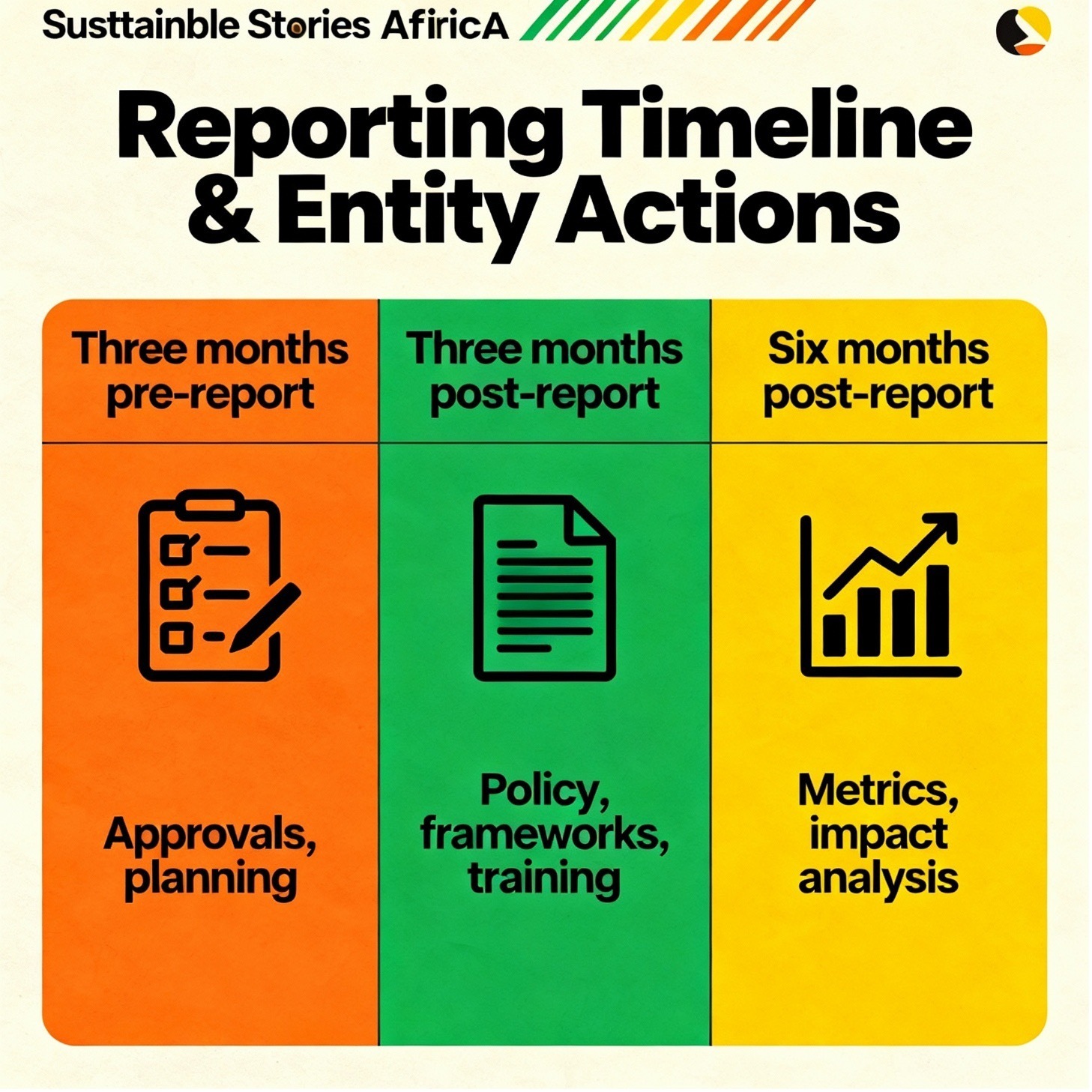 | Three months post-report | Policy, frameworks, training |