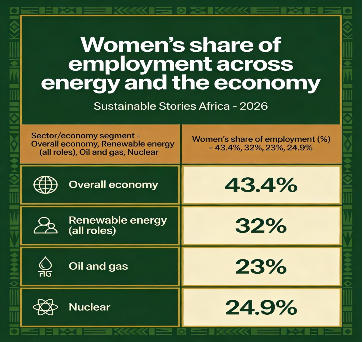 However, fresh global gender data from IRENA show that women still hold only 32% of full‑time jobs in renewables, better than oil and gas at about 23% and nuclear at 24.9%, but far below women's 43.4% share in the wider economy.