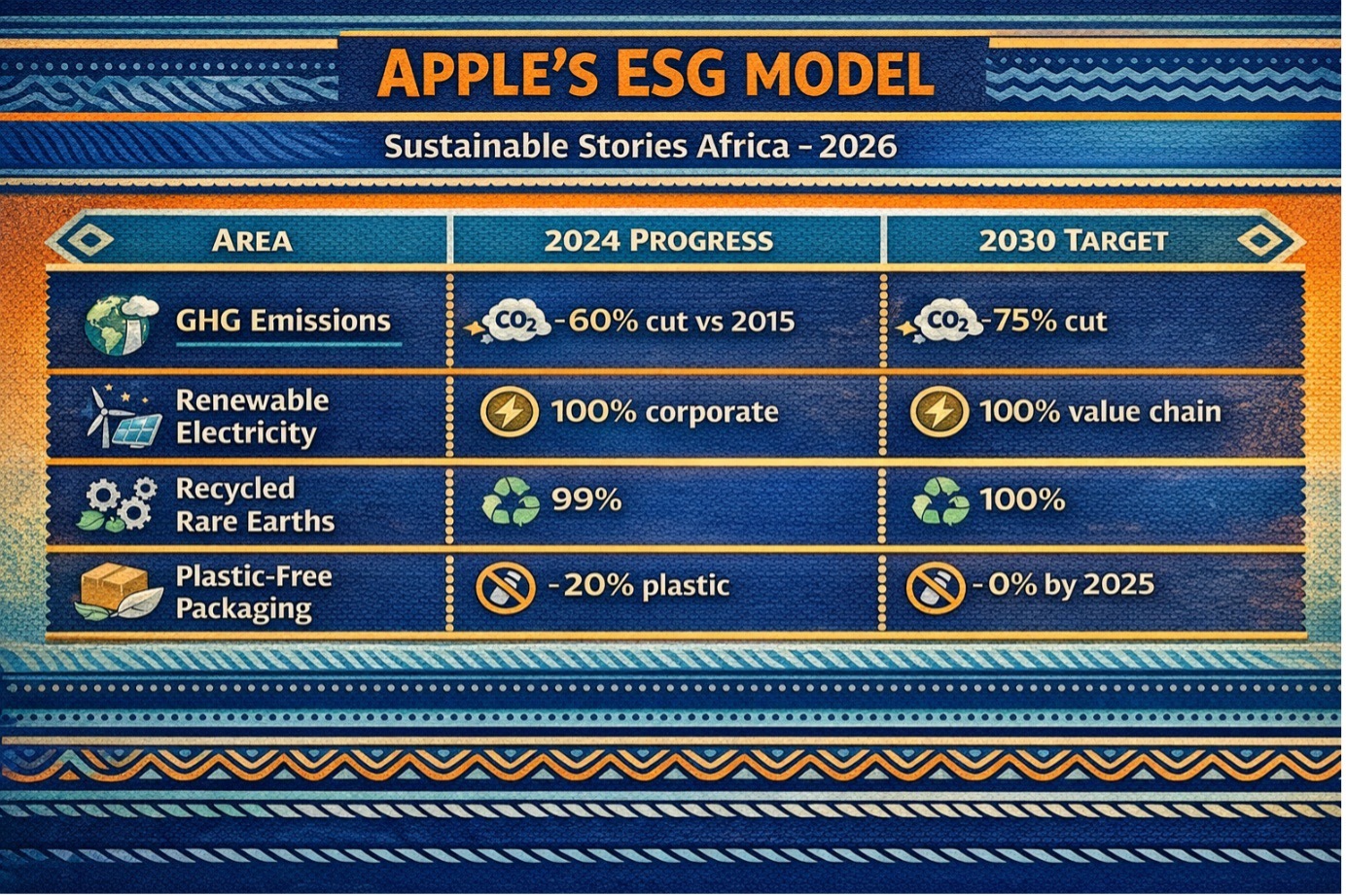 For African companies navigating new ESG disclosure rules, climate risks, and investor expectations, Apple's approach offers a practical blueprint: measurable targets, transparent reporting, and strong supplier accountability systems.
