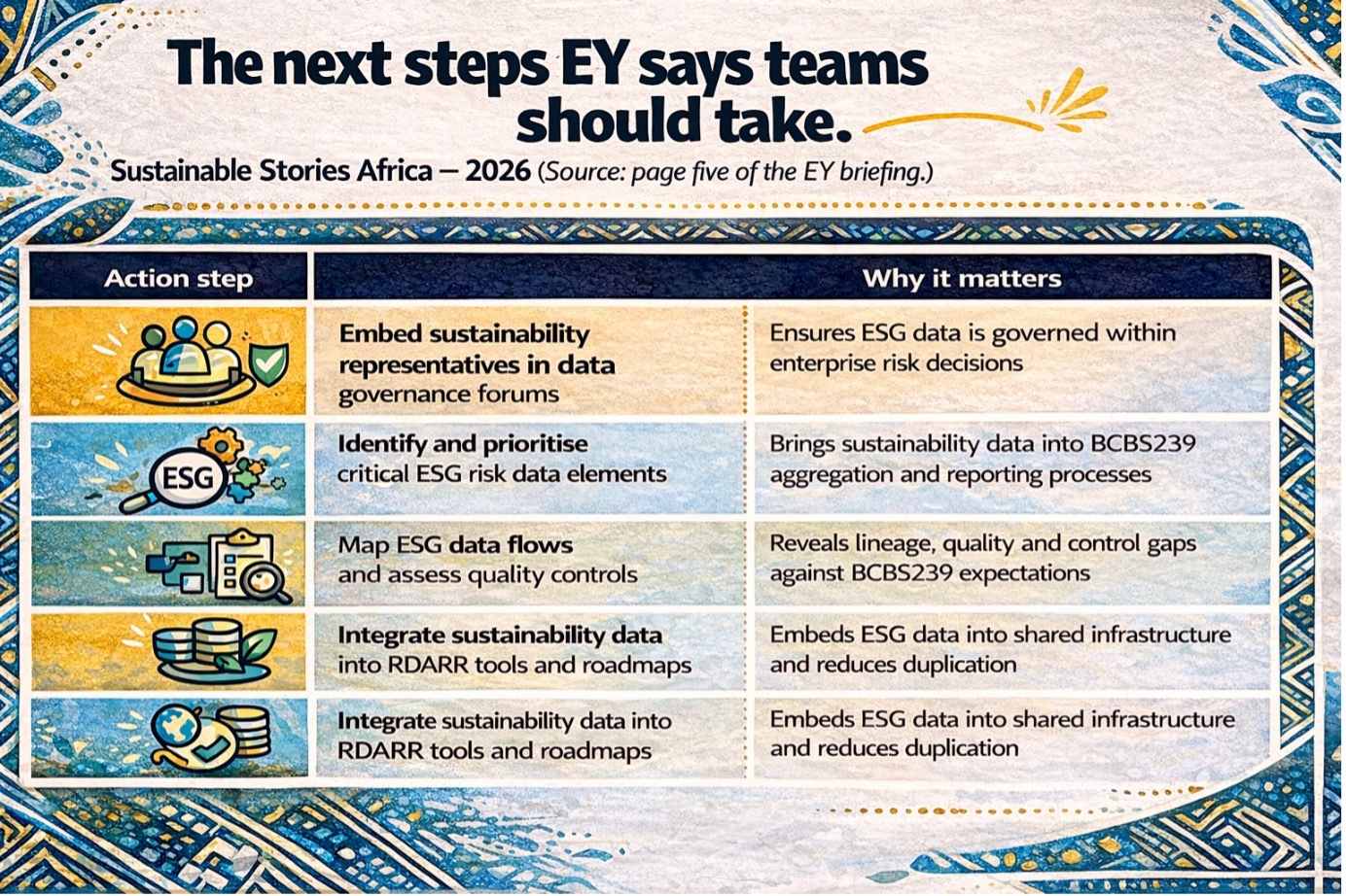 For banks across Africa and other emerging markets, the practical lesson is clear. The institutions that build ESG data into enterprise risk systems early will be better placed to handle future supervisory pressure, assurance demands and climate-related shocks.